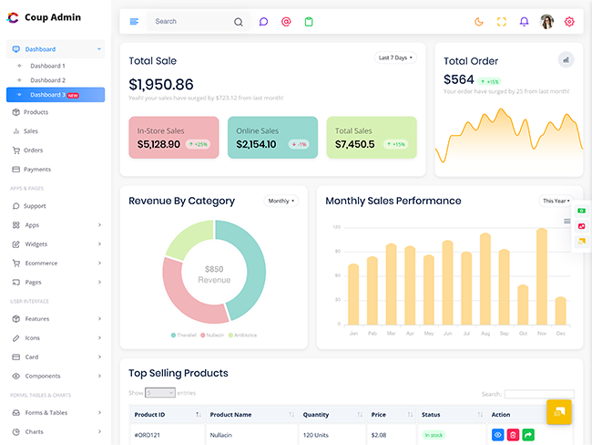 Coup is one of the unique modern admin dashboard HTML Template. Premium admin dashboard with high endless possibilities.